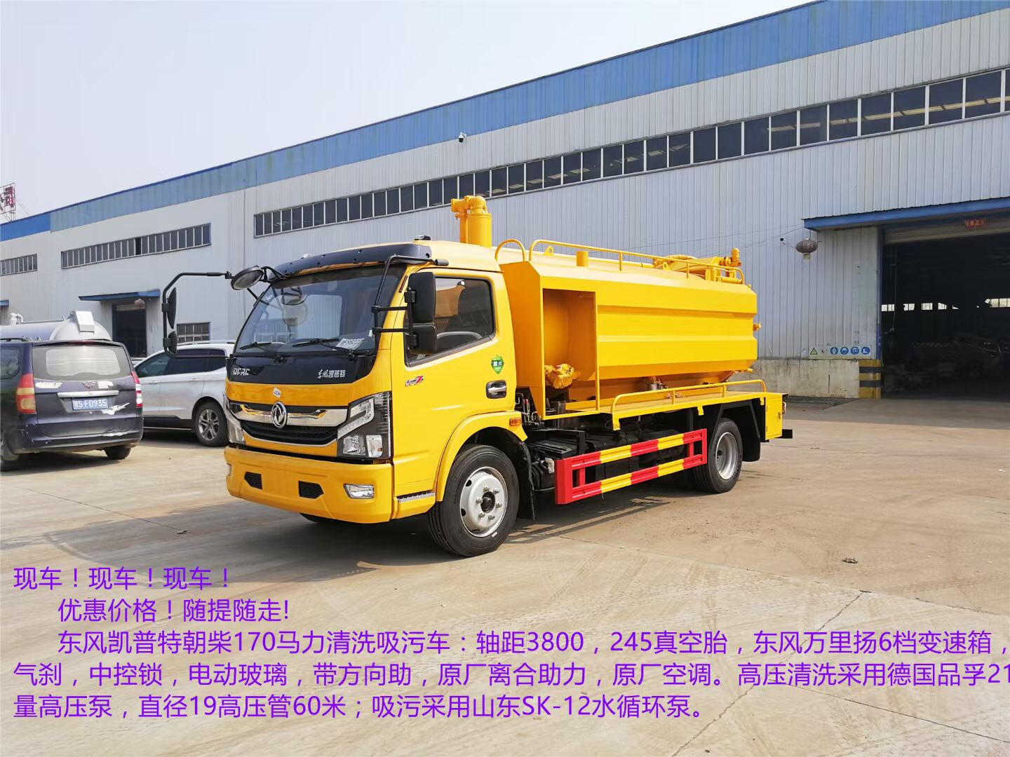 現(xiàn)車,現(xiàn)車,長期備貨現(xiàn)車! 可現(xiàn)場試車,隨提隨走 6方清洗吸污車3308軸距東風(fēng)多利卡1臺 (藍牌包上牌) 品孚170高壓泵,山東淄博SK-9水循環(huán)泵 6方