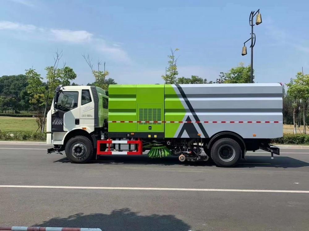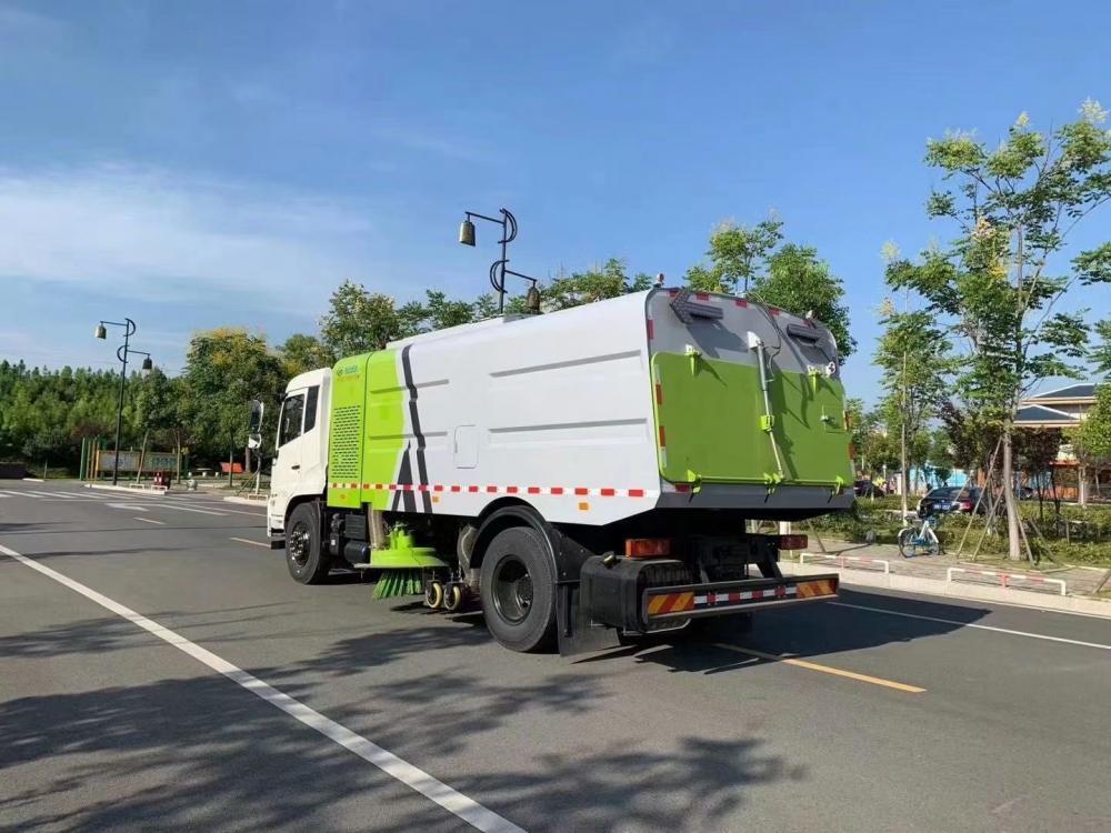 洗掃潔凈度高,該車型齊全的功能解決不同路面環境的作業,一次作業洗掃效率達98%以上,前沖功能、洗掃功能、路沿清洗功能、后噴霧功能、低壓沖洗功能以及采用的吸盤+左右側噴桿結構,路面、溝縫、彎道處、路沿上等處的灰塵、垃圾均能處理干凈,確保環境干凈、整潔。
