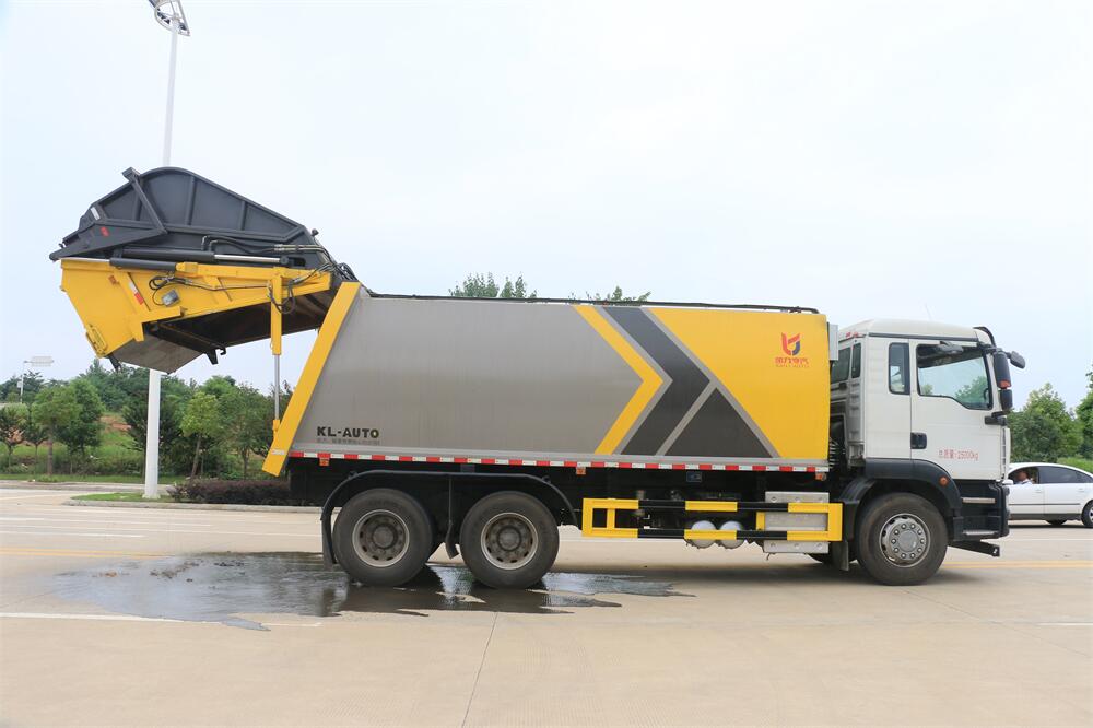 上裝配置:垃圾箱容積:20方,新款平面弧形廂體,廂體材料為武鋼優質碳鋼,PLC一鍵操作**,手電一體操作模式,兩側雙電控,帶駕駛室內操作,底板支撐加強,雙向壓縮,開放式易清潔污水箱。壓縮式垃圾車采用機電液一體化技術,借助機、電、液聯合自動**系統、電腦**、手動操作系統,通過填裝器和推鏟等專用裝置,實現垃圾倒入、壓碎或壓扁、強力裝填,把垃圾擠入車廂并壓實和推卸,污水全部進入污水廂,解決了垃圾運輸過程中的二次污染的問題。壓縮式垃圾車具有自動反復壓縮以及蠕動壓縮功能,壓縮比高、密封性好、裝載量大﹑操作方便、環保性好﹑整車利用功率高等優點。作業自動化,垃圾收集方式簡便、高效。后翻轉機構選裝:1、掛塑料桶式翻轉機構;2、掛鐵桶式翻轉機構;3、擺臂式翻轉機構; 4、簸箕斗式翻轉機構。