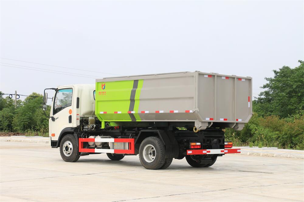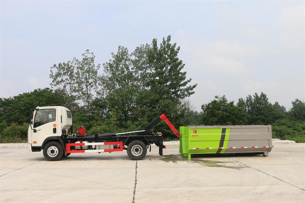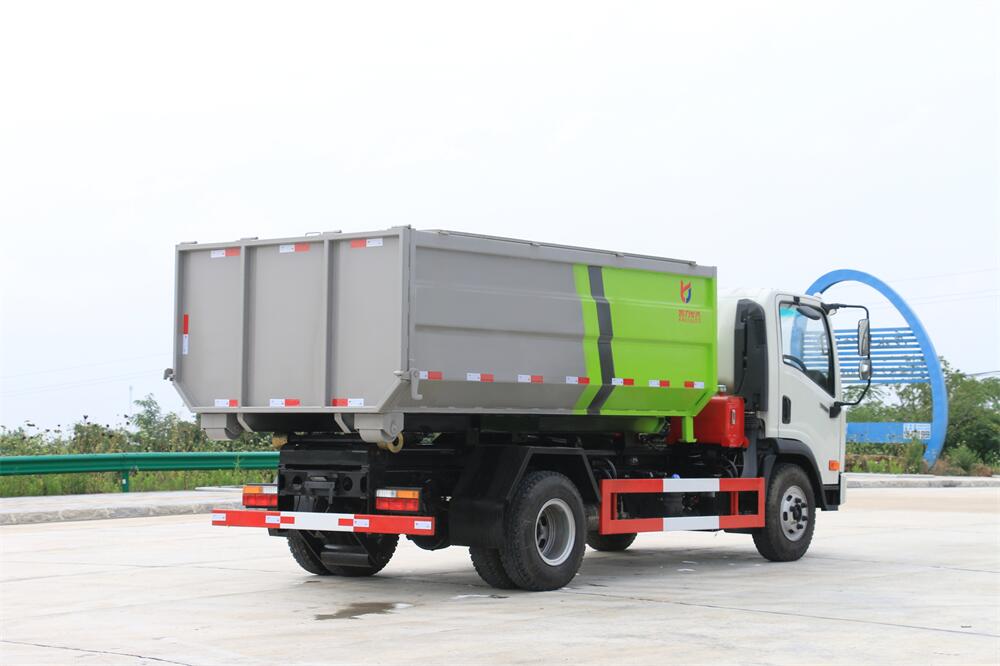 勾臂式垃圾車(車廂可卸式垃圾車)介紹: 車廂可卸式垃圾車又叫拉臂式垃圾車,是一種采用高新設(shè)計(jì)可伸縮的鉤臂,實(shí)現(xiàn)垃圾廂的二次吊裝,自吊上放下,可自行傾倒垃圾的環(huán)衛(wèi)設(shè)備。 拉臂式垃圾車結(jié)構(gòu)簡(jiǎn)單,操作穩(wěn)定方便,裝卸效率高,機(jī)械化程度高,節(jié)省人力。鉤臂垃圾車一車可帶多個(gè)垃圾廂,在裝卸的運(yùn)輸過程中可有效地避免二次污染。 拉臂垃圾車采用高新設(shè)計(jì)可擺動(dòng)的鉤臂,垃圾箱由框架、開啟油缸、滑輪、后門和若干加強(qiáng)框架與鋼板焊接而成。調(diào)換貨廂快捷方便,貨廂上帶蓋(倒垃圾時(shí)可翻開),鉤臂垃圾車?yán)鴰w可選用碳鋼、不銹鋼材質(zhì)、內(nèi)部采取環(huán)氧樹脂防腐處理,改裝部分與原車底盤為可分離式,維修方便且保持了原車的機(jī)動(dòng)性及行駛性能。