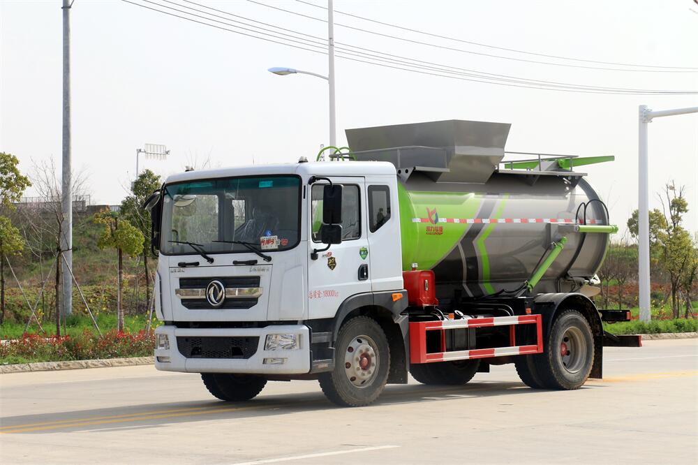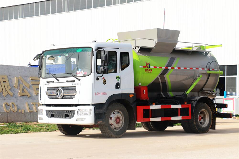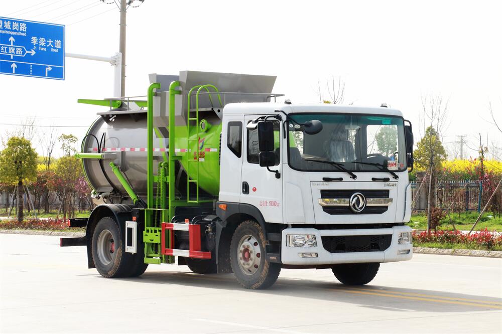 上裝配置:罐體容積10m3,配備120L/240L掛桶提升翻轉(zhuǎn)機(jī)構(gòu),液壓系統(tǒng),后蓋液壓鎖緊開(kāi)啟,罐體可以舉升自卸,尾部帶自流閥;用于運(yùn)輸液態(tài)垃圾,其特點(diǎn)操作簡(jiǎn)單,密封性好,無(wú)泄漏,無(wú)異味;可選裝固液分離功能,推板擠壓功能,常用于餐館的垃圾轉(zhuǎn)運(yùn)處理。
