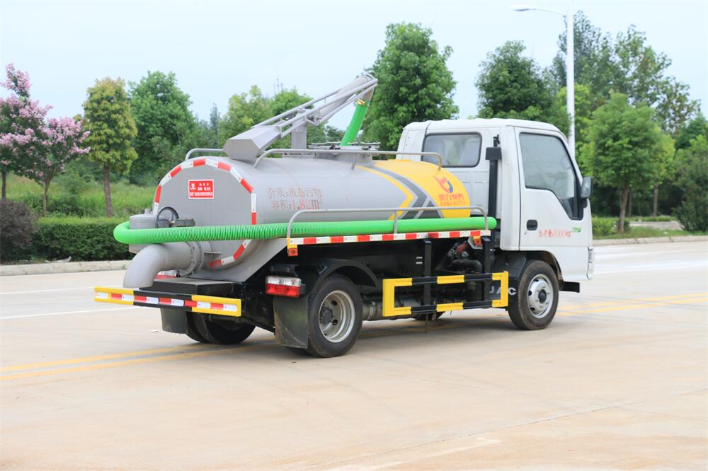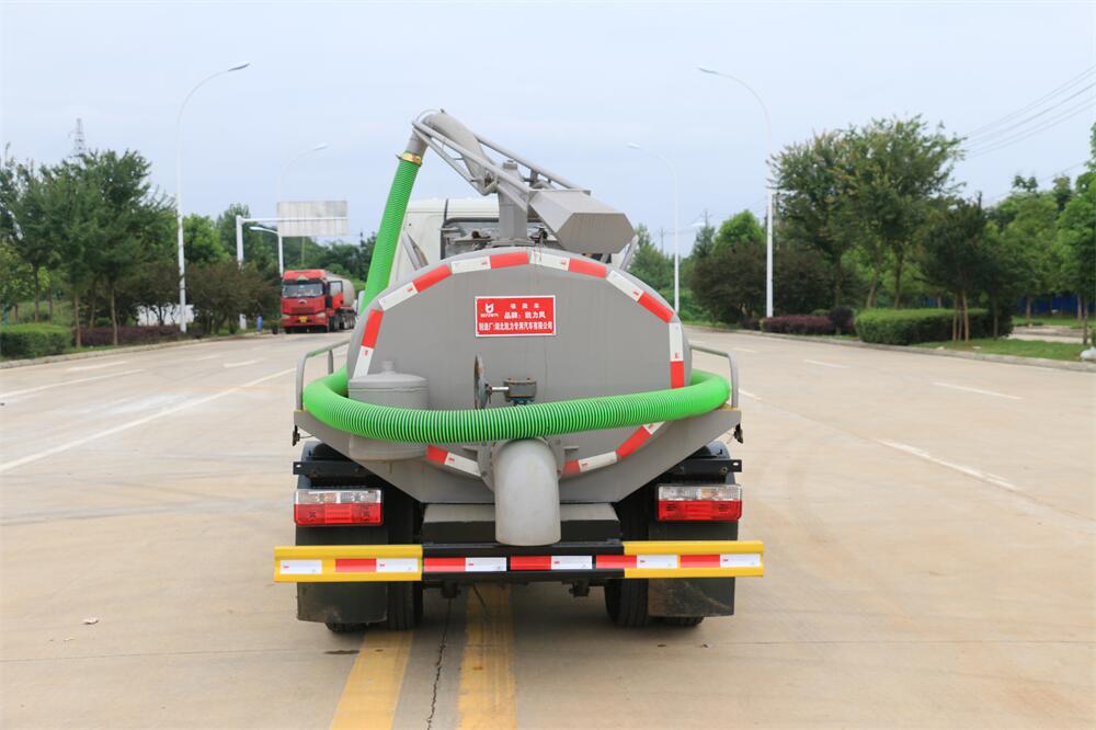 上裝配置:5T真空油泵(SK-9水循環(huán)泵), 油水分離器 ,防溢閥,視糞管,洗水箱,吊桿座(可270度旋轉(zhuǎn)),尾部一個220排糞口帶駕駛室操作,一根6米吸糞管帶陰陽端快接頭。