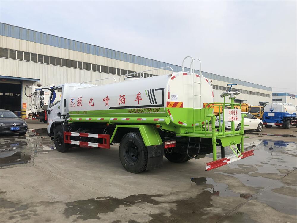 灑水車前裝有鴨形噴嘴或圓頭沖嘴,后面裝有圓柱開灑水噴嘴或蓮蓬頭噴嘴,后部有一工作平臺,裝配有水炮。后部還可裝8個噴嘴(選裝)。