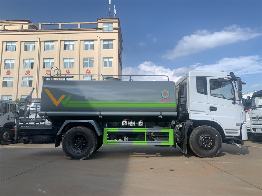 灑水車前裝有鴨形噴嘴或圓頭沖嘴,后面裝有圓柱開灑水噴嘴或蓮蓬頭噴嘴,后部有一工作平臺,裝配有水炮。后部還可裝8個噴嘴(選裝)。