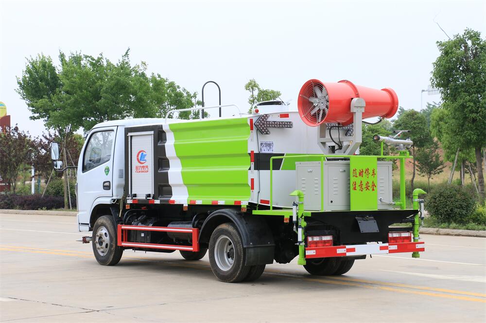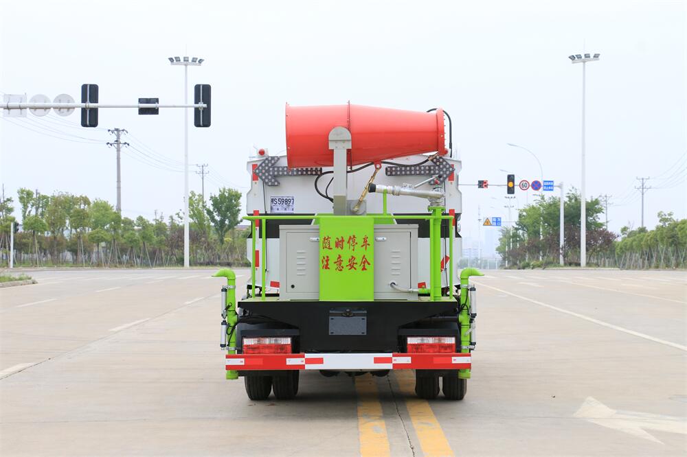 上裝配置:罐體容積為 5-7立方,選配風(fēng)送式霧炮機(jī)組射程30米、40米、50米、60米、80米、100米、120米霧炮,罐體鋼板為4mm碳鋼Q235材質(zhì),罐內(nèi)隔板具有防波作用,以減輕汽車(chē)行駛時(shí)罐體液體沖擊,罐體及整車(chē)外形尺寸按照公告。帶大功率專(zhuān)用灑水泵,泵可自吸自排,整車(chē)前沖、后灑、側(cè)噴、帶65消防接口,后平臺(tái)配CLW-50、CLW-60、CLW-80、CLW-100、CLW-120型風(fēng)送式霧炮機(jī)組;罐體前封頭配大功率柴油發(fā)電機(jī)組;前封頭帶水位計(jì),后平臺(tái)主管路帶1寸澆花接口,后爬梯。帶兩根輸水管及陰陽(yáng)端。罐體顏色:銀/灰/綠,罐體兩側(cè)噴“多功能抑塵車(chē)”字樣,貼反光標(biāo)示。