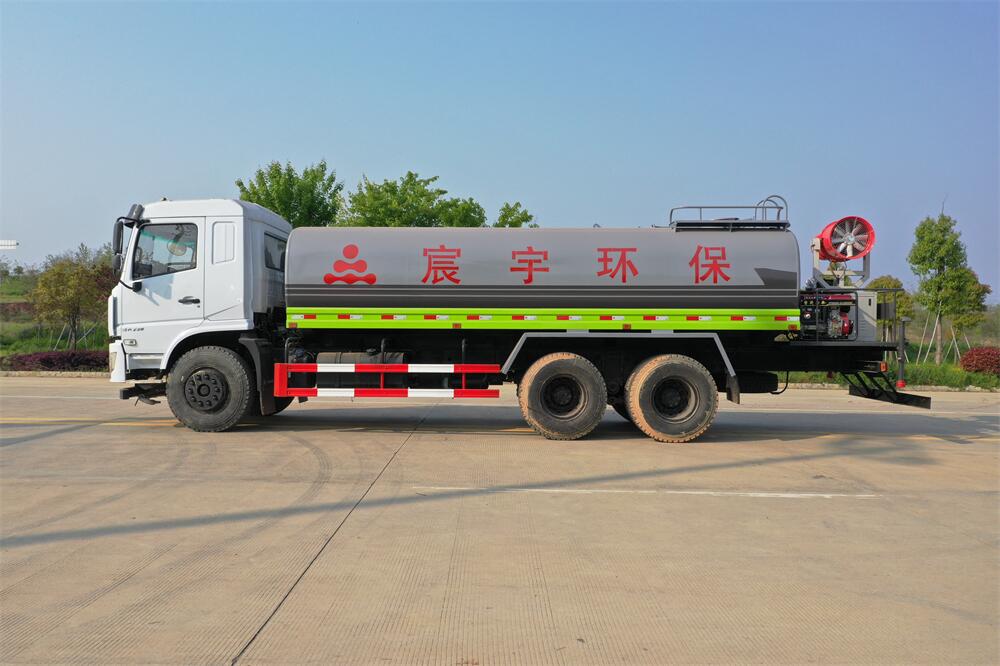 上裝配置:罐體容積 18-20立方,風送式霧炮機組30米,40米選擇,罐體采用國標Q235碳鋼材質,罐體厚度4MM,前后封頭5MM加厚型,罐體內雙層隔板具有防波蕩作用,以減輕汽車行駛時罐內液體沖擊;灑水車整車及外形尺寸嚴格按照**機動車公告制作而成;裝配大功率專用灑水泵,前沖、后灑、側噴、后平臺帶綠化灑水炮,灑水炮可全方位旋轉,可連續調成直沖狀、大雨、小雨、毛毛雨;配消防接口,自流閥,濾網,帶自吸自排功能。前封頭帶水位計,后平臺主管路帶1寸澆花接口,后爬梯,帶1個消防接頭,帶1個自流閥,1個過濾裝置,其余標配。