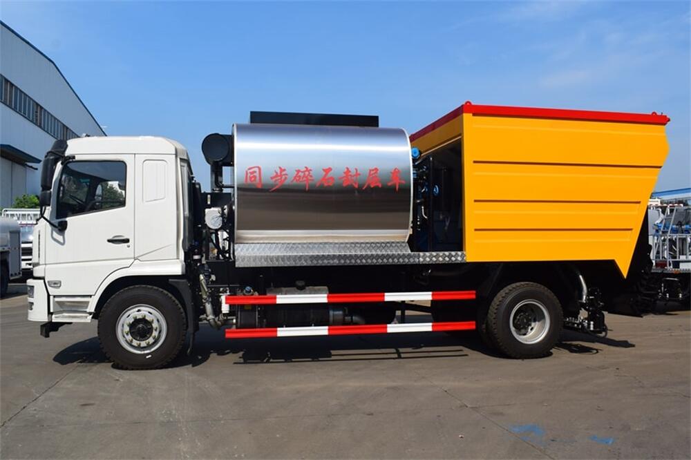 4、后雙橋同步碎石封層車完全采用電氣**,自動化程度高,,能**的計算出設備在施工過程中瀝青噴灑量和石屑撒布量的多少;