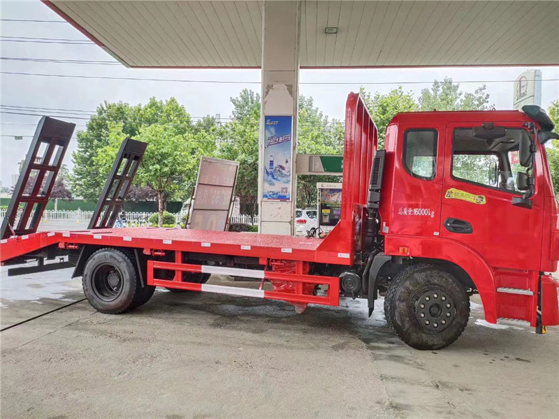 東風錦程單橋平板運輸車 **新款東風駕駛室 發動機:玉柴4缸180馬力/玉柴6缸200馬力 變速箱:陜齒8檔 前后橋:5T/9T或10T 可選軸距:4.5米/4.7米/5.1米 輪胎:10.00R20 大梁:280雙層直通大梁 整車對應尺寸:長度8400/8600/9000寬度*2500/2550*高度3100 車型亮點:ABS防抱死系統 .大燈高低調節. 剎車間隙自動調整臂. 防飛濺. 空氣座椅.齊星**駕駛室,兩點懸浮,電動玻璃,液晶顯示屏,倒車影像,手機藍牙互聯,ABS,原廠空調,LED行車燈。 上裝采用五毫米花紋鋼板,120*120方鋼做橫梁,加強型雙爬梯,可定做液壓爬梯.可承載15-18噸挖機。