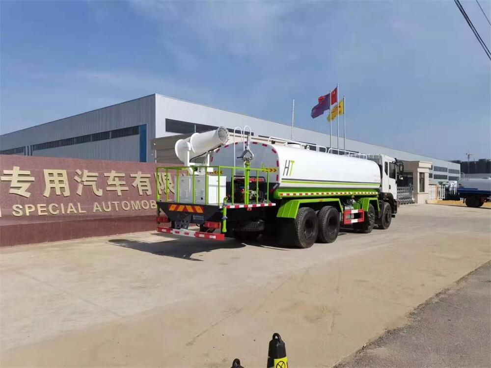 主要由發動機帶動變速箱,變速箱上安裝的取力器帶動灑水泵,灑水泵產生動力,將罐體內部的液體通過管網噴灑出去。工作范圍:自吸高度:≥7m,灑水寬度:≥14m,**大射程:≥28m;可調節成柱狀,射程≥28m;也可調節成霧狀,射程≥5m。